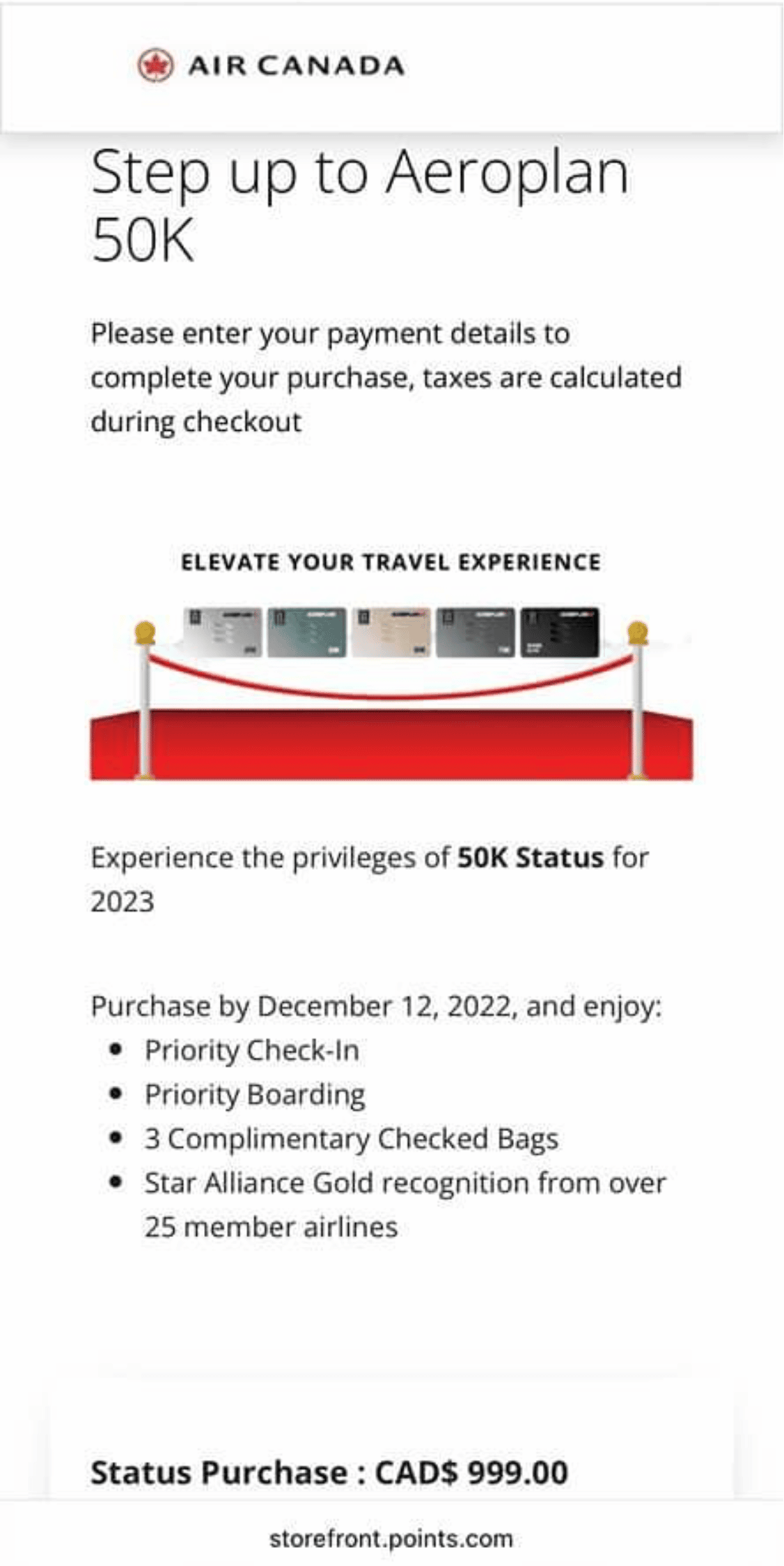 Air Canada began offering these types of status buy-ups in 2016, although due to pandemic-related status extensions, it has been a while since they were last offered.