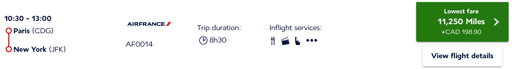 You could even snag a flight from Paris to New York with Air France for only 11,250 miles.