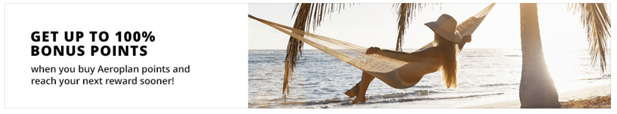 With this promotion, you’ll get a bonus of up to 100% when you purchase a certain threshold of Aeroplan points.