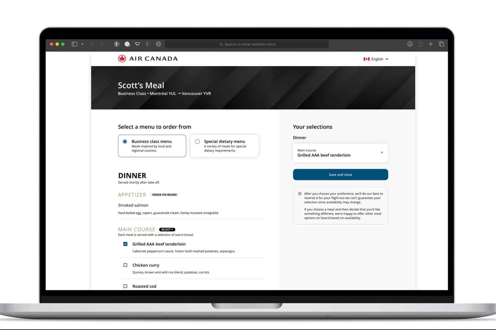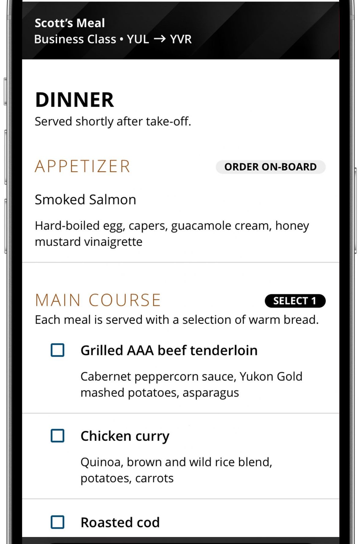 Passengers can pre-order meals either on the Air Canada website or through the Air Canada app.