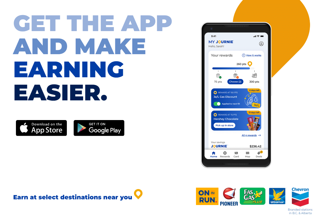 Journie Rewards also has a partnership with CIBC: with a CIBC credit and debit card, members get to save a higher amount of up to 10 cents (CAD) per litre.