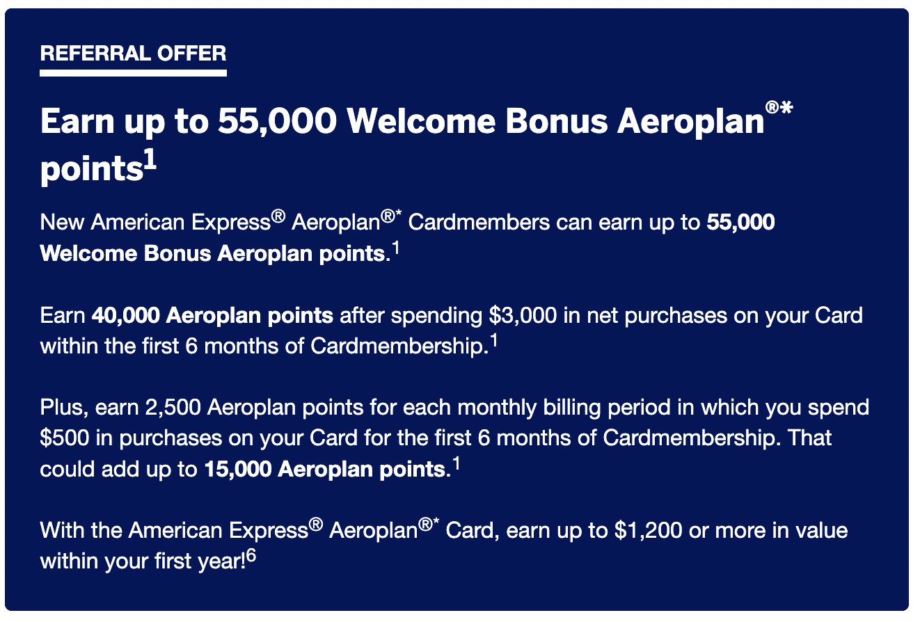 - 40,000 Aeroplan points upon spending $3,000 in the first six months