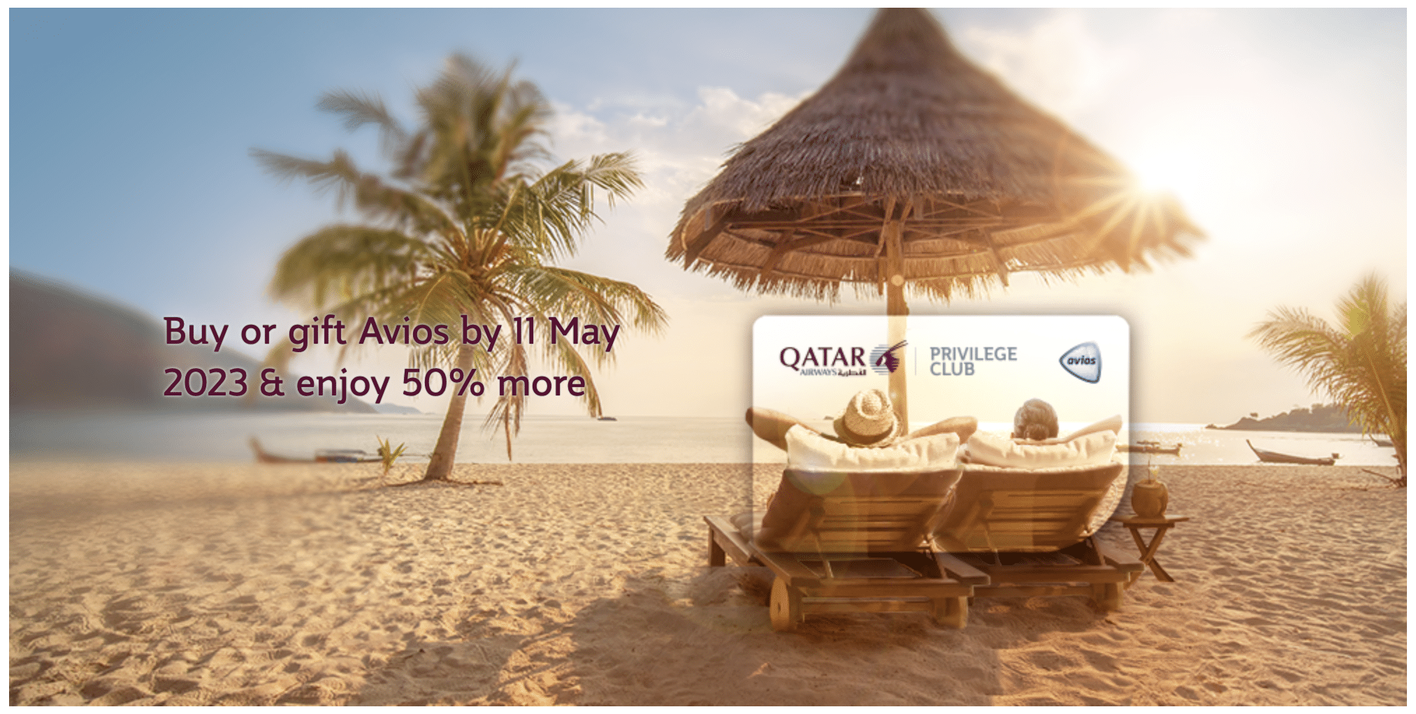 From now until 8:59pm GMT on May 11, 2023, Qatar Airways is offering a 50% bonus on purchased Avios.