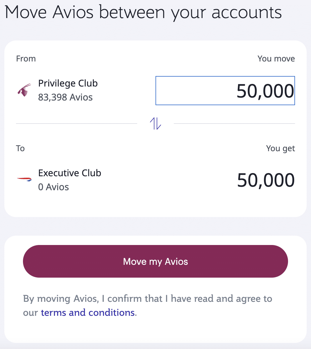 Simply enter the number of Avios you wish to transfer, click “Move my Avios”, and the new balance will be reflected instantly.