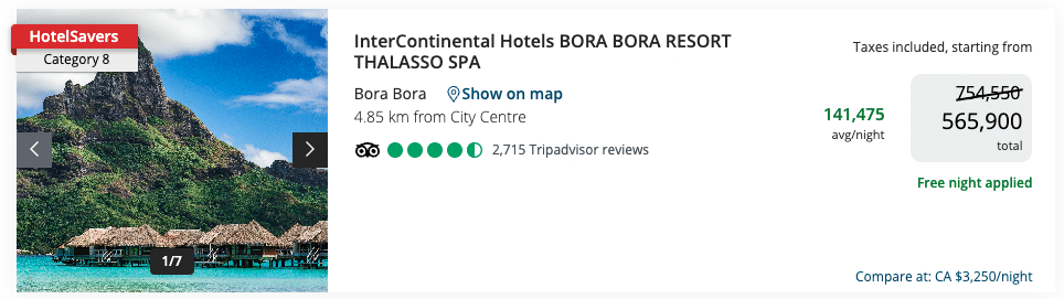 For example, the InterContinental Bora Bora Resort & Thalasso Spa is a Category 8 HotelSavers property.