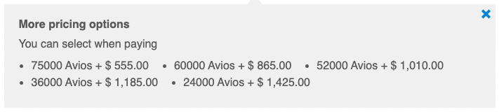 - Business class: 90,000 Avios + $450 (CAD)