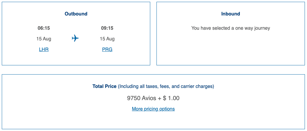It’s worth noting that Reward Flight Saver pricing is optional, and if you wish, you can choose a different combination of Avios and cash by selecting “More pricing options” during the booking process.