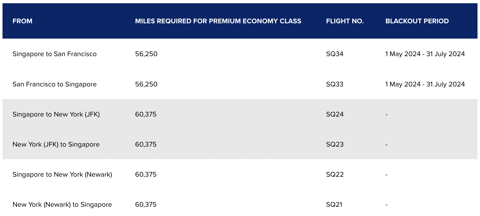 Award flights must be booked from October 16–22, 2023, and are valid for flights from January 1–July 31, 2024, with some blackout dates on the Singapore–San Francisco route.