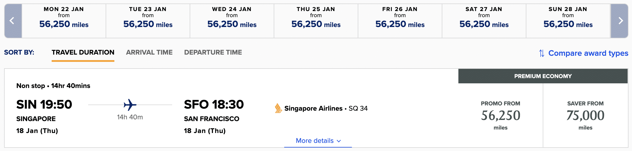 Furthermore, the 25% discount only applies to flights operated by Singapore Airlines, and not on other partner airlines. You may not waitlist for a discounted award with this promotion.