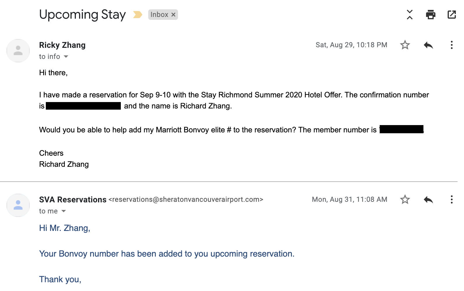Once these bookings are complete, you can typically get in touch with the hotel via email and request to add your elite membership number to the file, after which the booking will show up in your “Upcoming Trips” section just like any booking you’ve made yourself.